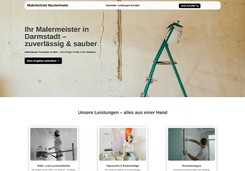 Beispiel-Website für einen Malerbetrieb, die zeigt, wie wir kleine Unternehmen online sichtbar machen. Modernes Design, klare Struktur und direkte Kontaktmöglichkeiten für Kunden.